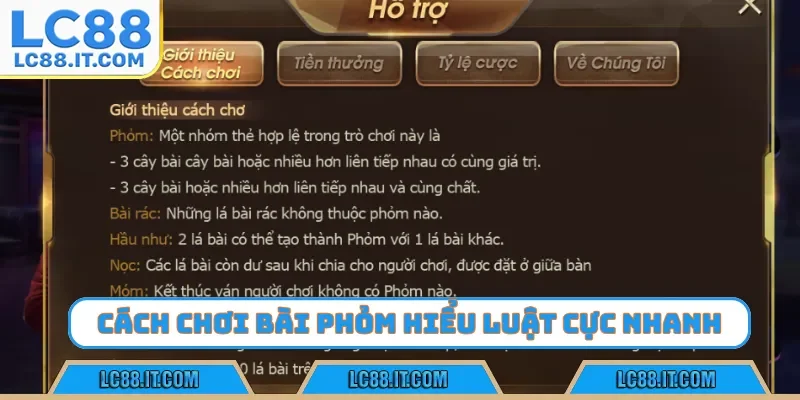 Cách chơi bài phỏm là bộ môn đòi hỏi trí tuệ kết hợp chiến thuật phán đoán bài đối thủ tinh tế. Để giành chiến thắng, anh em cần nắm vững luật chơi, kỹ thuật câu bài, gửi bài thông minh. Ngoài ra, hãy đăng ký tài khoản trên LC88 để bắt đầu giải trí an toàn nhé.